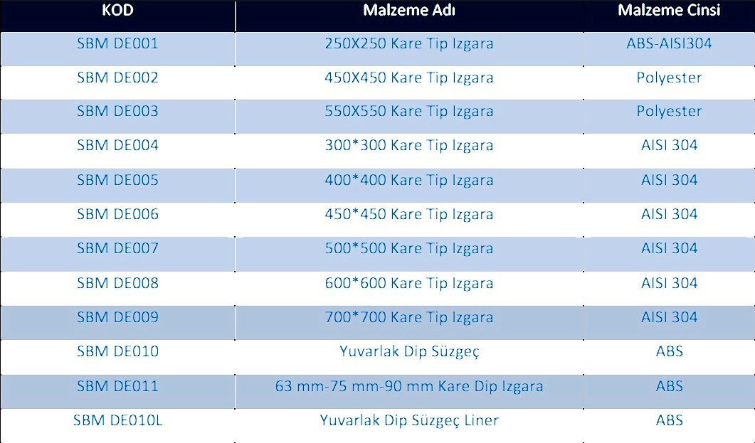 DİP EMİŞ IZGARALARI